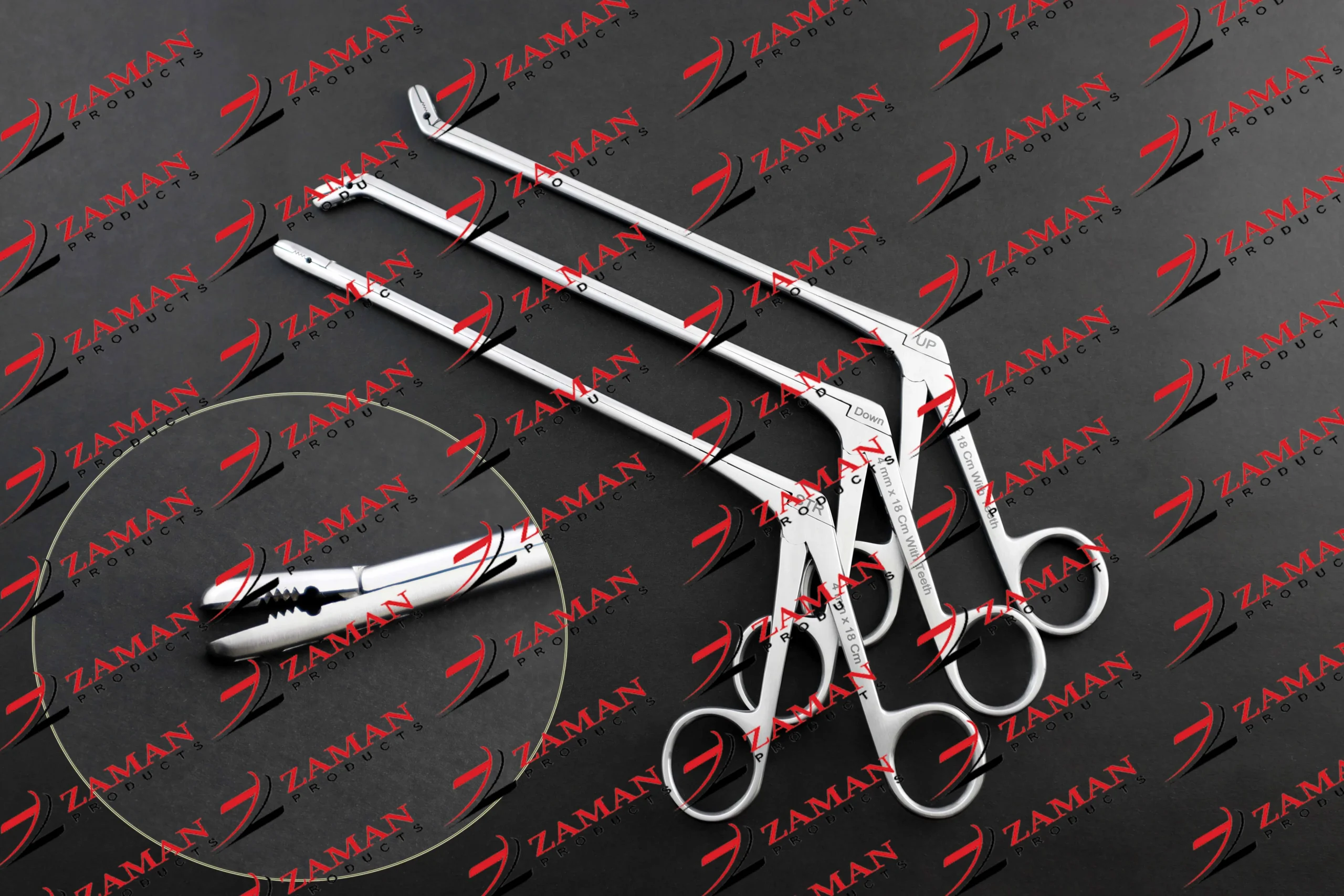 4 mm Laminectomy Intervertebral Disc Rongeur 3 PCs Set Up, Down, Straight 18 cm With Teeth By Zaman Products
