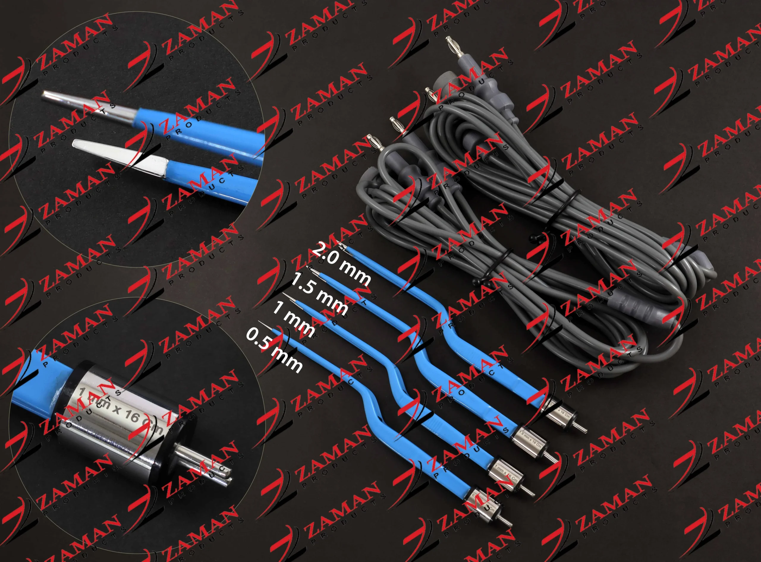 American Bipolar Bayonet Forceps 0.5,1,1.5,2 mm 16 Cm ( 4 pcs + 2 Cords Set ) By Zaman Products